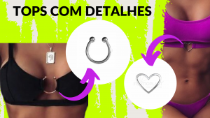 Uma boa dica é investir em aviamentos imponentes em peças como o top, por exemplo: