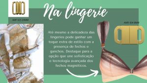 Até mesmo a delicadeza das lingeries pode ganhar um toque extra de estilo com a presença de fechos e ganchos. Destaque para a opção que une sofisticação e tecnologia avançada dos fechos magnéticos.