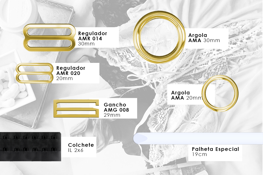 Além das lingeries tradicionais com argolas e regulagens em tamanhos especiais, abuse de pingentes nesta proposta para agregar mais valor à sua criação. Além de unir design e sustentação com tiras duplas de colchetes. Uma inspiração é investir em tiras e alças mais largas que além da sustentação dão um toque todo sensual à peça.