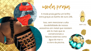 O banho de Ouro 24k Fermoplast é indicado para os mais diversos segmentos, sobretudo, os de moda íntima e também moda praia. Graças aos critérios utilizados em sua produção, este banho se diferencia e garante ainda mais durabilidade e resistência, além de uma beleza inconfundível.