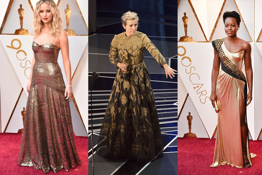 O dourado com aspecto propositalmente gasto, tem sido um dos favoritos na moda e apareceu, inclusive, no red carpet do Oscar em 2018 com Jennifer Lawrence à bordo de um Dior alta costura.
