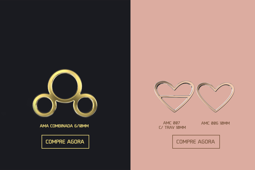 Para ares românticos abuse de corações, pingentes e brinque com essa escolha junto aos tecidos. Já no estilo fetichista que rende sempre muita inspiração na moda íntima, peças bem elaboradas com sobreposições de argolas e muitas tiras são a pedida ideal. Para as tiras, nossa argola AMA combinada é uma escolha bonita e funcional.