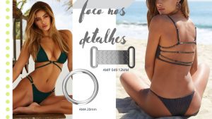 Um outro toque todo especial é o destaque frontal de argolas e também nas calcinhas. Uma ótima forma de destacar e unir as tiras de biquínis.